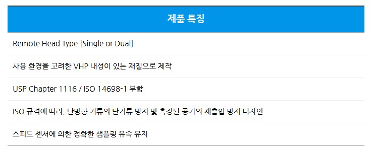 USP Chapter 1116 및 ISO 14698-1 기준에 부합하며,