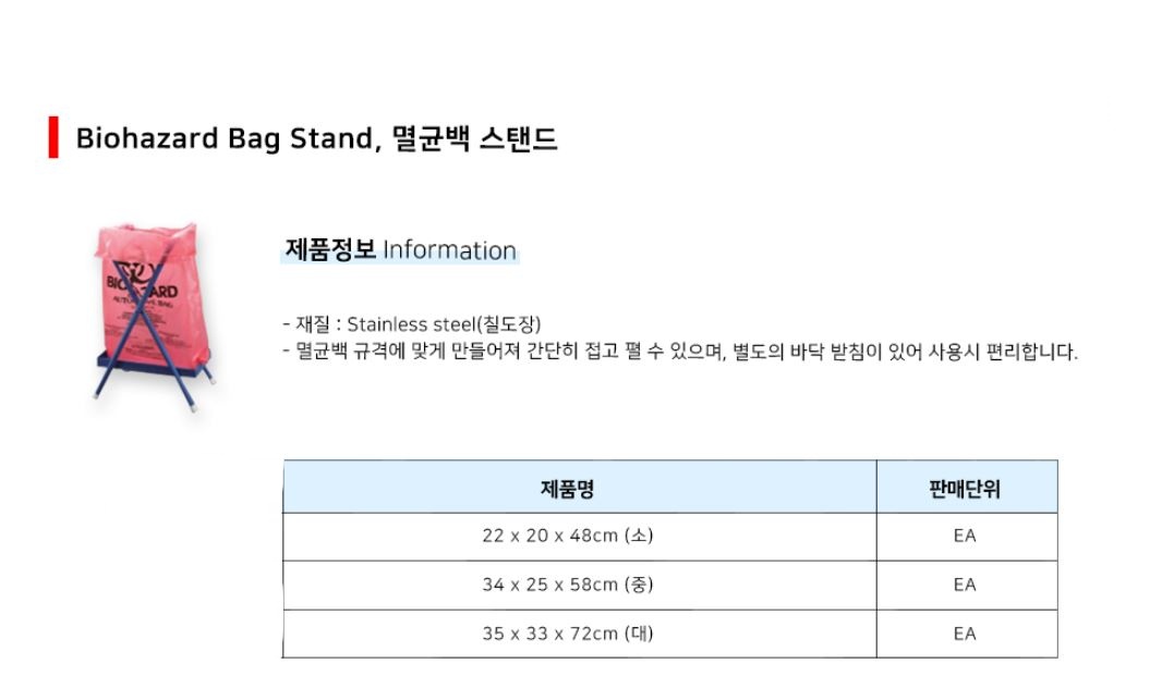 품명 바이오해저드 멸균백 스탠드 Biohazard bags Stand