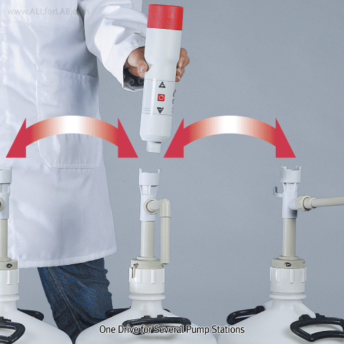 Burkle® PP Electric Barrel Pumps, with Touch Panel, 0.4Lit ~ 12Lit/min. for Precise Dosing, One Drive for Several Pump Stations, Battery-/Power Supply-type, 전기식 배럴펌프