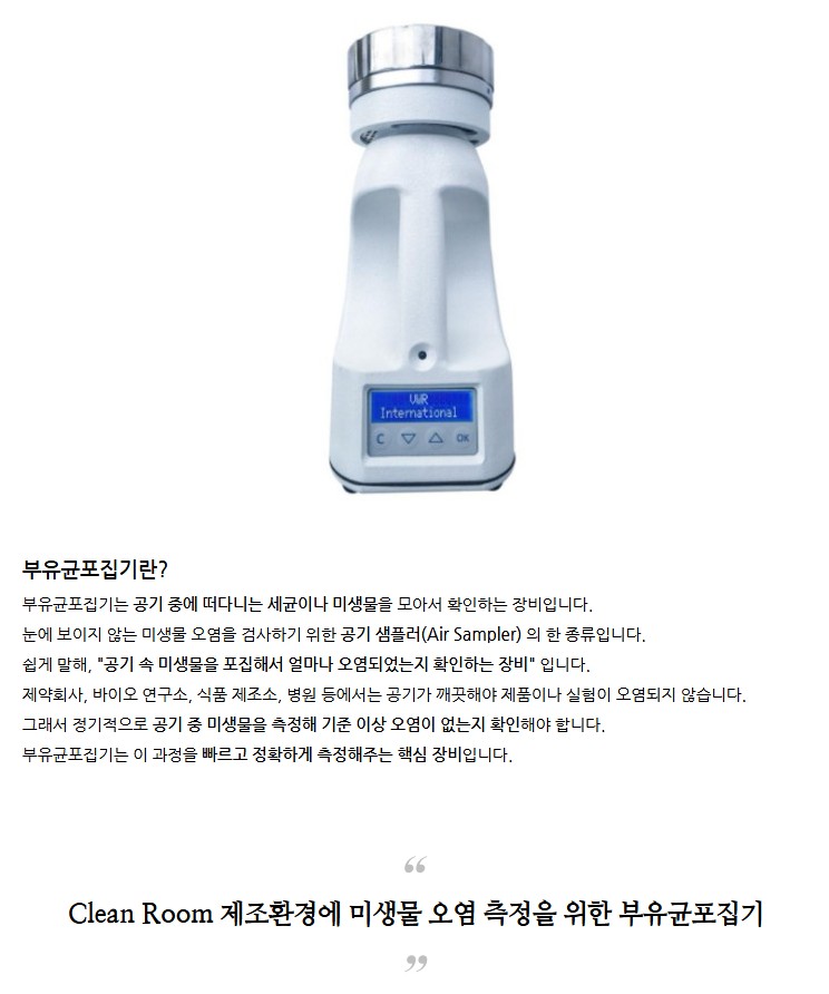 부유균 포집기 클린룸 에어 샘플러 공기중 미생물 오염 측정기