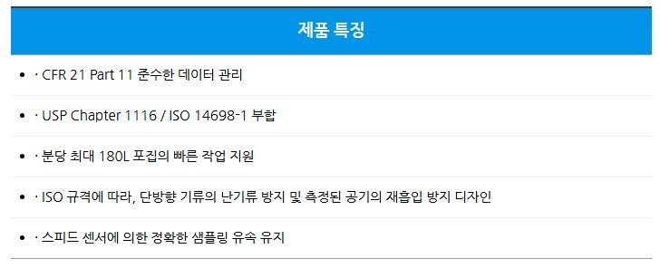 스피드 센서 기반의 정밀 샘플링 유지 기능을 갖춰 품질 관리 환경에 적합합니다.