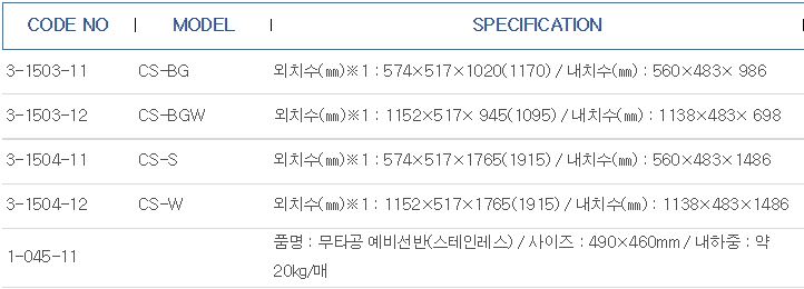 ● 부속품:스테인리스 펀칭 선반 CS-BGI·BGWI·SI/4매, CS-WI/8매