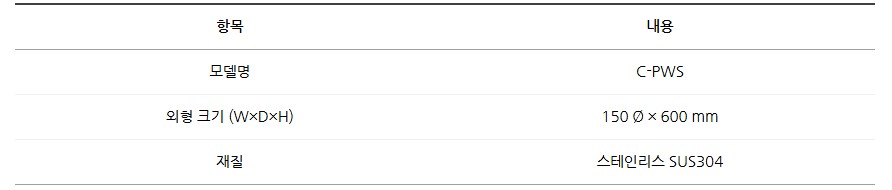 제품 전면과 내부 구성은 SUS304 스테인리스로 제작되어 내식성과 위생성도 뛰어납니다.