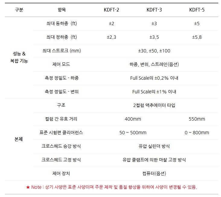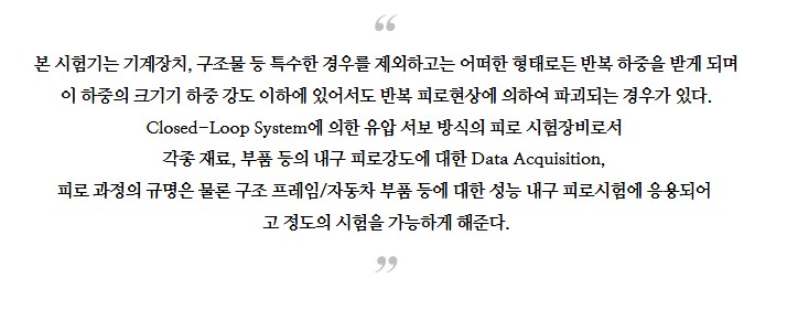 유압 서보식 피로시험기 금속·구조물 피로 강도 변위하중 테스트 장비 KDFT 시리즈