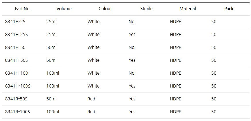 멸균(S) 및 비멸균 제품화이트/레드 컬러로 구분 제공됩니다.
