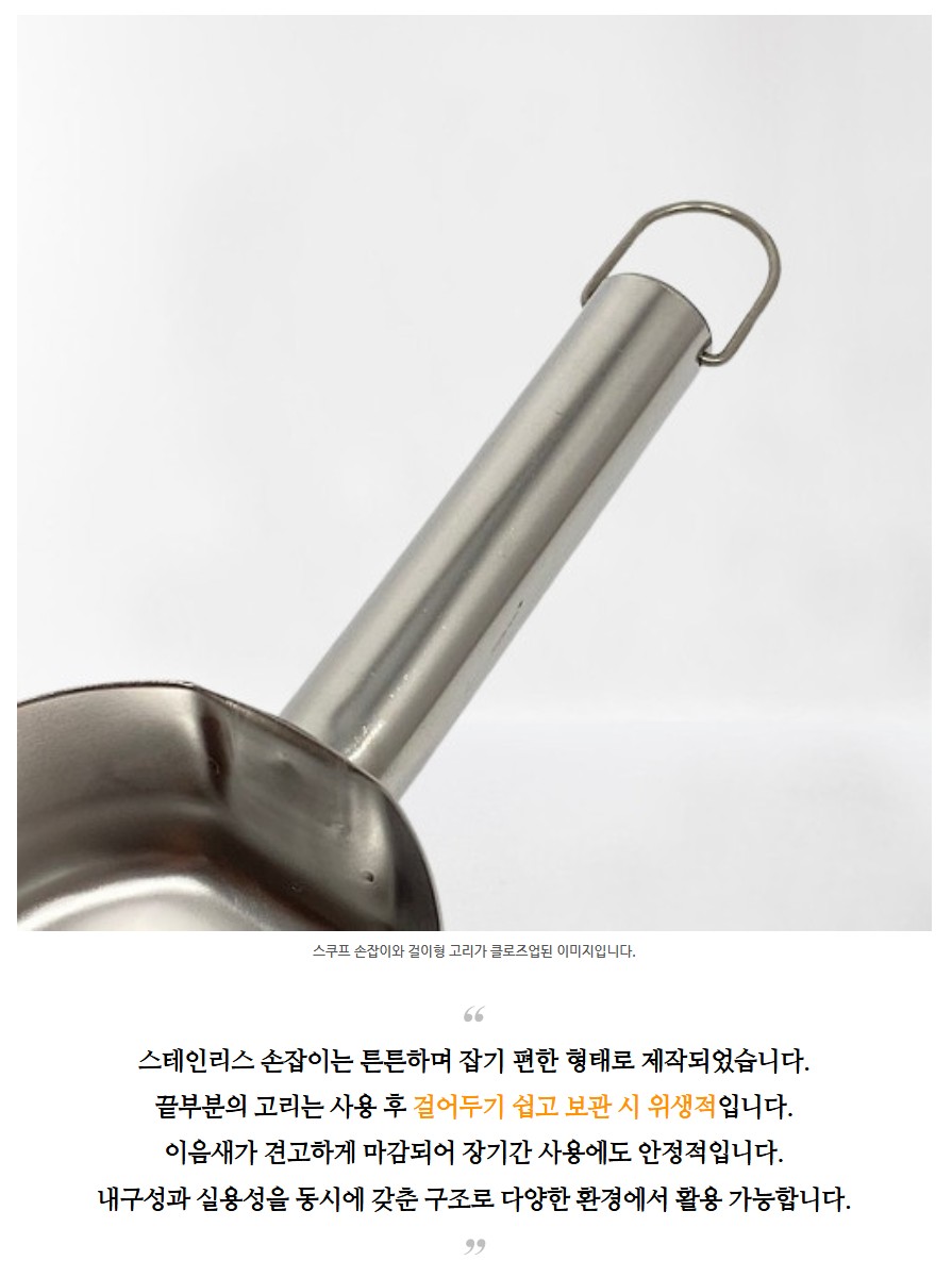 품명 고급 스테인리스로 제작된 사각 스쿠프로 위생적이고 내구성이 뛰어나며 곡물, 얼음, 커피 원두 등 다양한 재료를 효율적으로 덜어 사용할 수 있습니다.