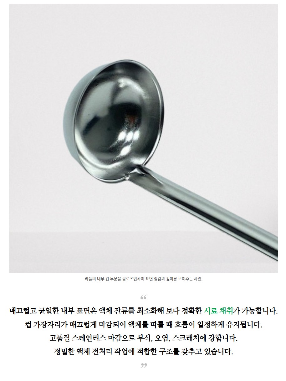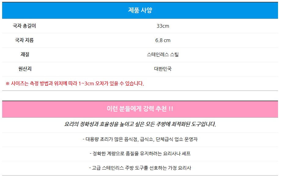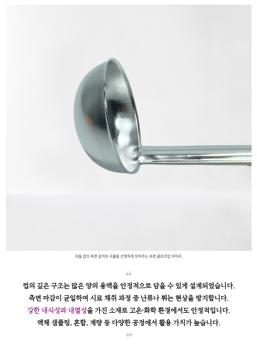 업소용, 가정용, 카페용 등 다양한 환경에서 활용되는 실용적인 스테인리스 계량 국자입니다.