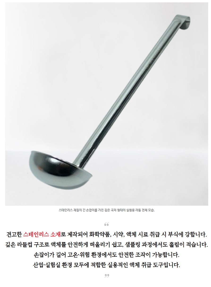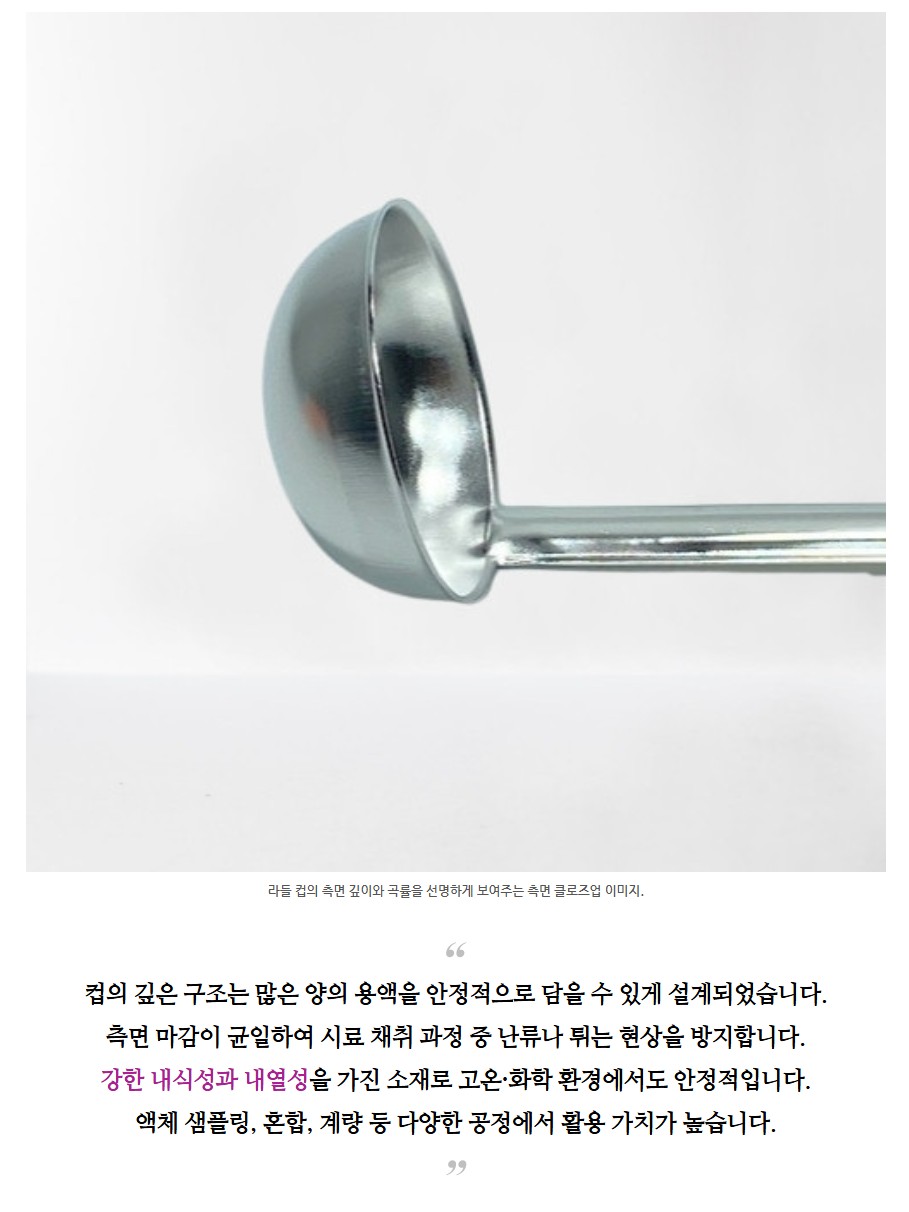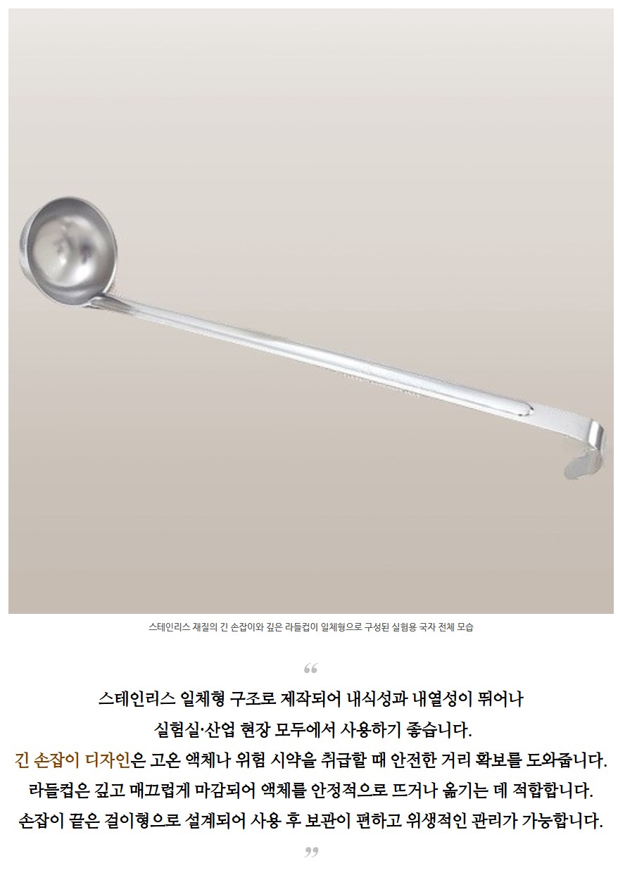 업소용, 가정용, 카페용 등 다양한 환경에서 활용되는 실용적인 스테인리스 계량 국자입니다.