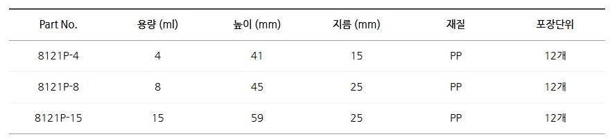 좁은 입구 구조로 액체 보관 및 샘플링에 유리하며, 반투명한 PP 재질로 내부 내용물을 쉽게 확인할 수 있습니다.