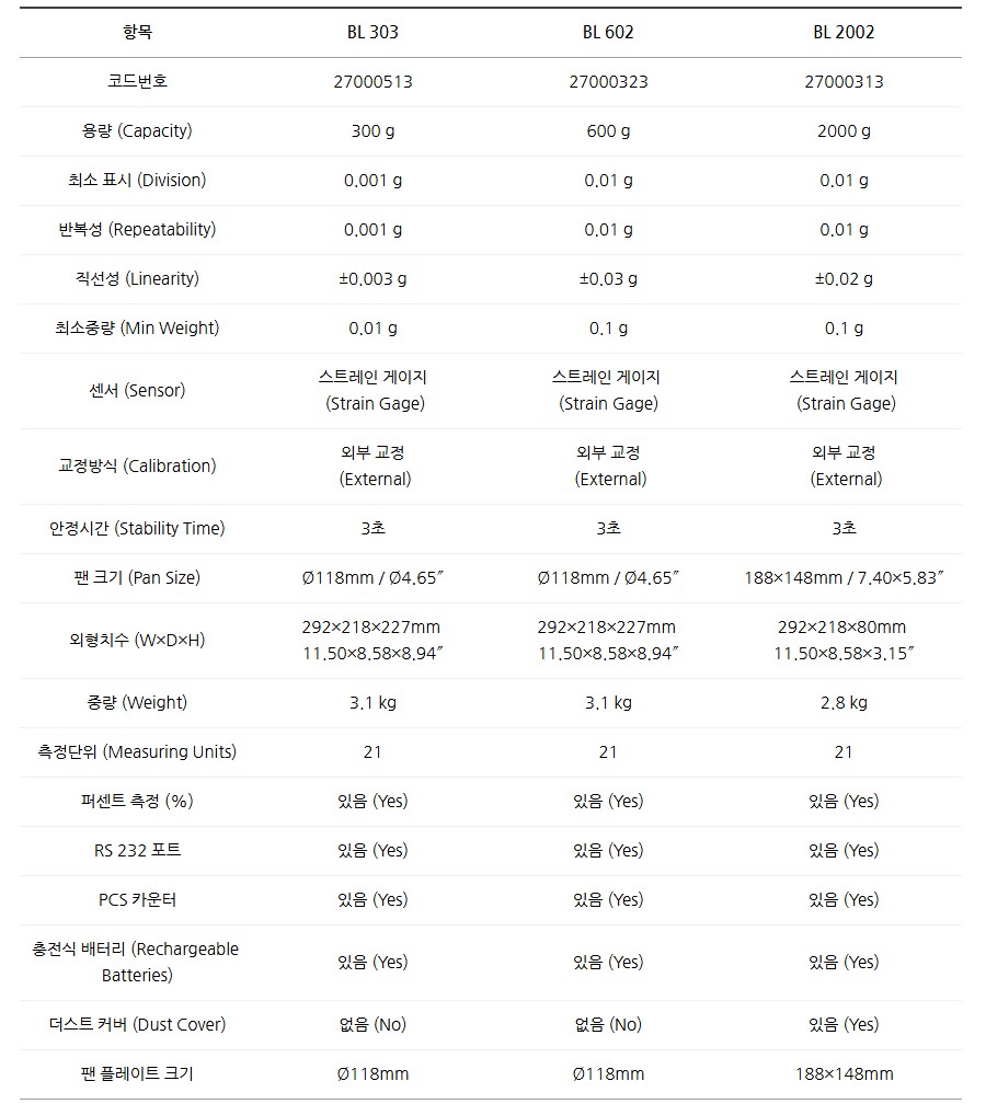 특히 BL 303 모델은 교정 보고서 제공0.001g 정밀도로 미량 시료 측정에 최적화되어 있습니다.