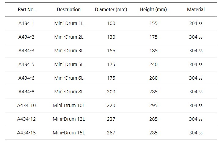 미니 드럼 304ss (Mini-Drums 304 ss, 1~15L)은