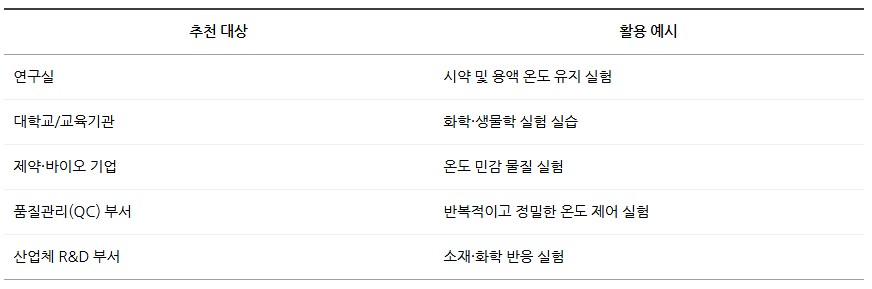 항온 수조(Heating Bath, Basic)는 연구실, 실험실에서 액체의 일정한 온도를 유지하며 다양한 실험을 수행할 수 있도록 설계된 장비입니다.