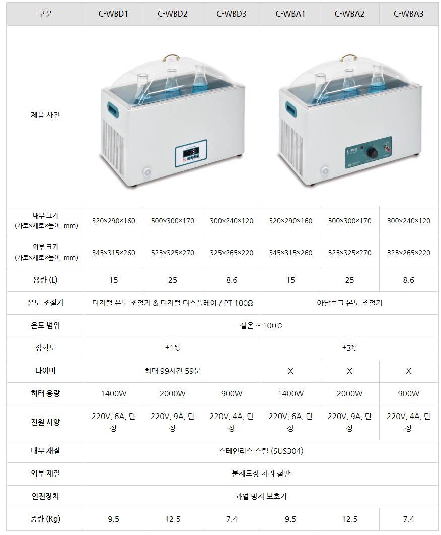 일반 항온수조 실험실용 SUS304 온도 정밀 수조 디지털/아날로그 타입 C-WB 시리즈