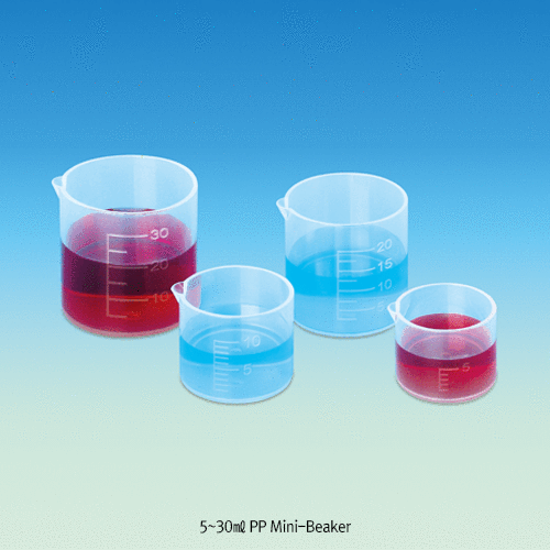 5~30㎖ PP Mini-Beaker, Graduated, with Spout, Autoclavable, TranslucenceIdeal for the Small Amount of Sample, 125/140℃ Stable, PP 소형 비커