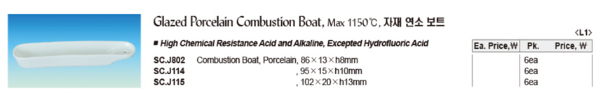 품명 자재 연소 보트 Glazed Porcelain Combustion Boat