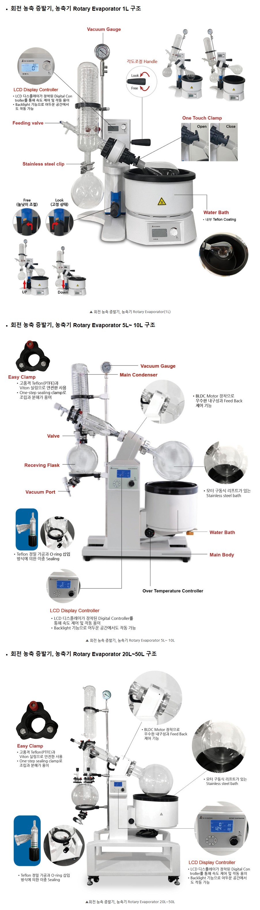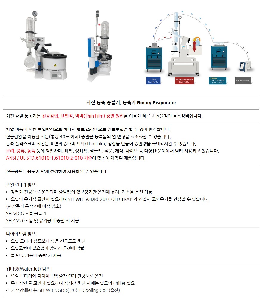 SH-RE 시리즈 회전농축증발기(Rotary Evaporator) 는 진공감압, 표면적 확대, 박막(Thin Film) 증발의 원리를 이용한 고효율 농축 장비입니다.