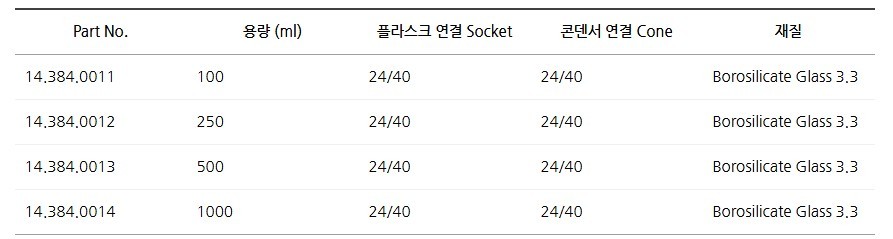 24/40 조인트 사이즈를 사용하여 대부분의 실험용 플라스크 및 냉각기와 호환되며