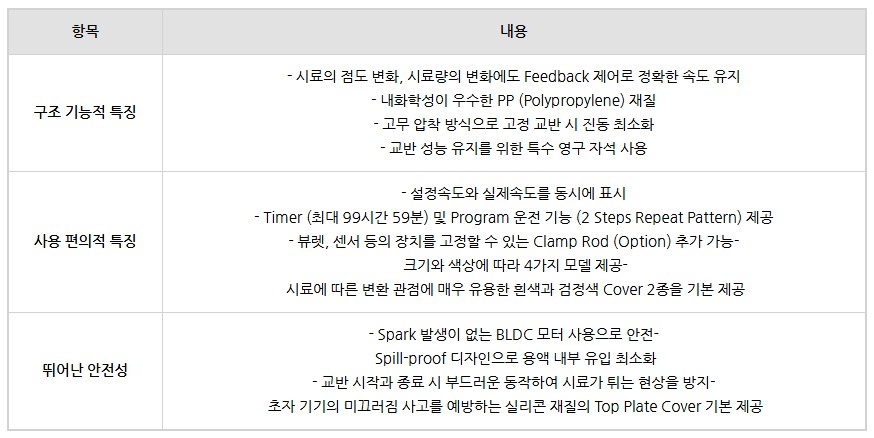 타이머 및 프로그램 운전 기능 등 다양한 편의성과 고정밀 속도 제어 기능을 겸비했습니다.