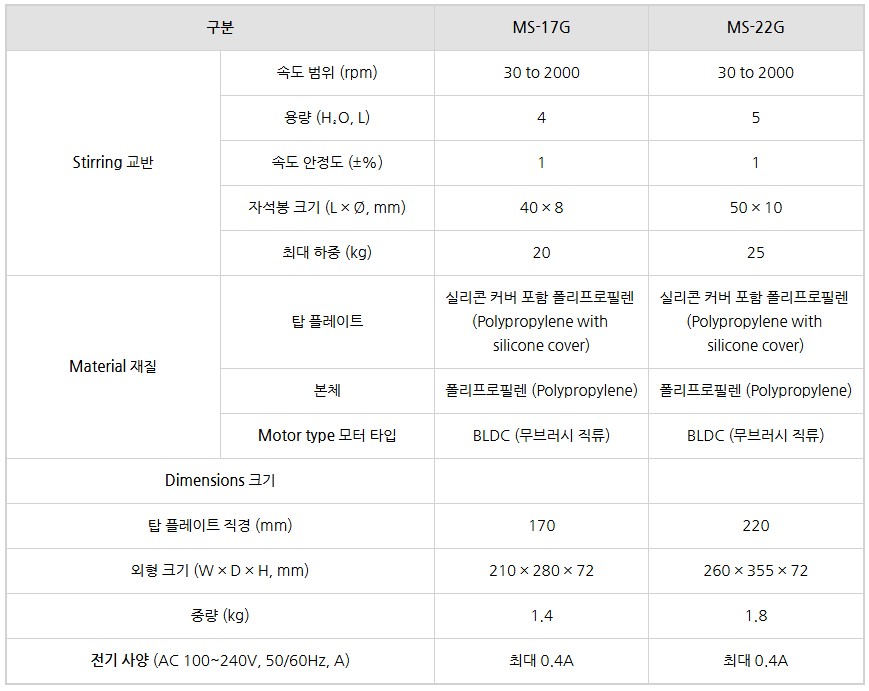 품명 정밀 피드백 제어 자력교반기, 타이머·프로그램 운전 지원, BLDC 모터 장착 실험실용 교반기 MS-17G/MS-22G