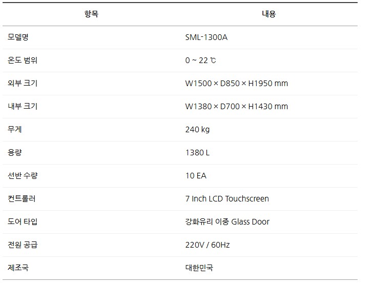 0~22℃ 온도 제어 범위와 7인치 터치스크린 LCD 컨트롤러를 통해 정밀한 온도 관리가 가능하며,