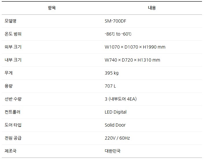 SM-700DF 초저온 냉동고는 -86℃에서 -60℃까지 안정적인 초저온 보관이 가능한 고성능 장비입니다.