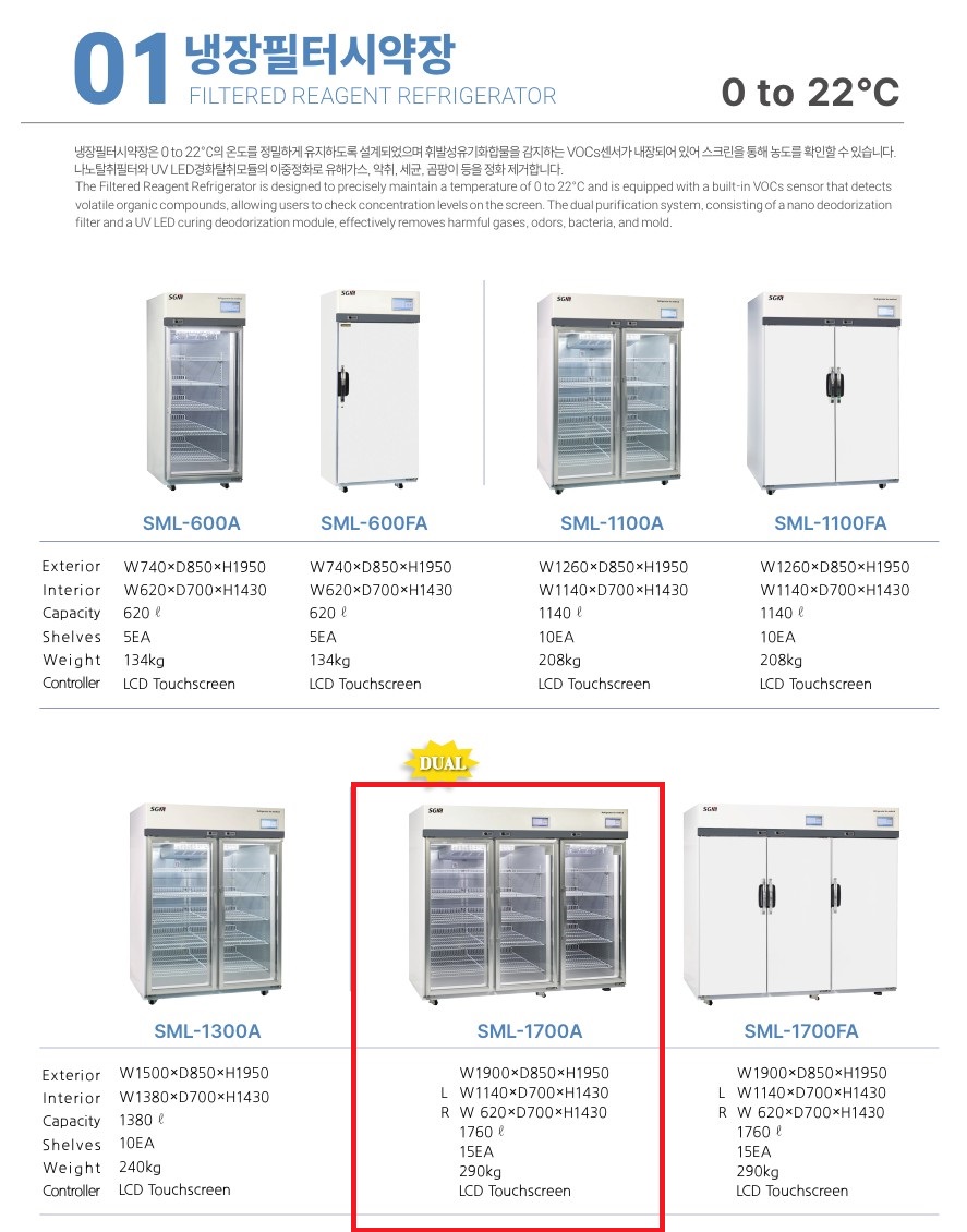 냉장 필터 시약장 자체정화식 15단 선반 대용량 실험실 유해가스 제거형 시약보관장 SML-1700A (1760L)