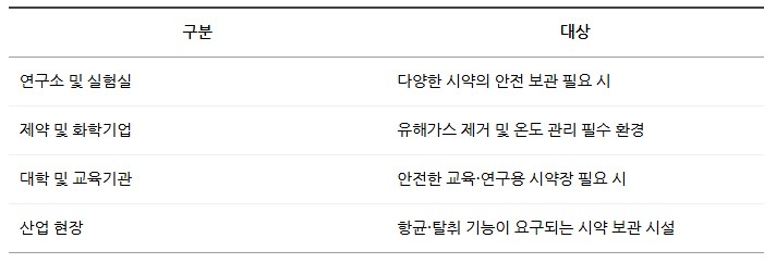 실험실에서 발생하는 유해가스와 시약 냄새를 효과적으로 제거하는 공기정화시스템이 탑재된 제품입니다.