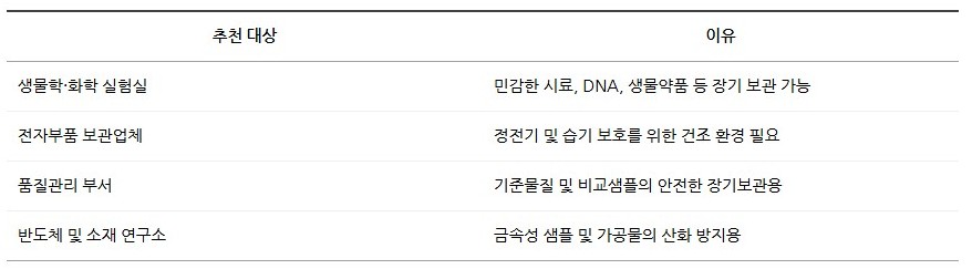 SH-DS-40 모델은 내부 공간이 넓고, 다양한 시료와 민감한 샘플 보관에 적합하며,