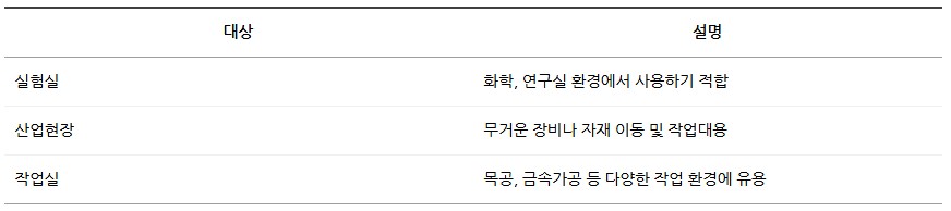 내구성이 뛰어납니다. 실험실, 산업현장, 작업실 등 다목적으로 활용할 수 있는 작업대입니다.