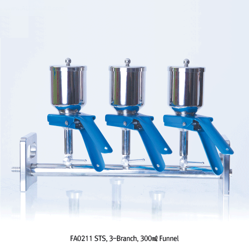 TJV® Vacuum Manifolds & Filter Holder Funnel, ideal for Strong Solvents & HPLC media with All Stainless-steel & Glass Funnel, Single-/3-/6-Branchs