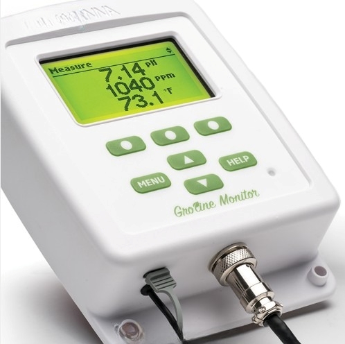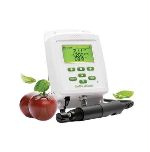 수경재배 양액을 24시간 연속으로 모니터링할 수 있는 pH/EC/온도 통합 측정기입니다.