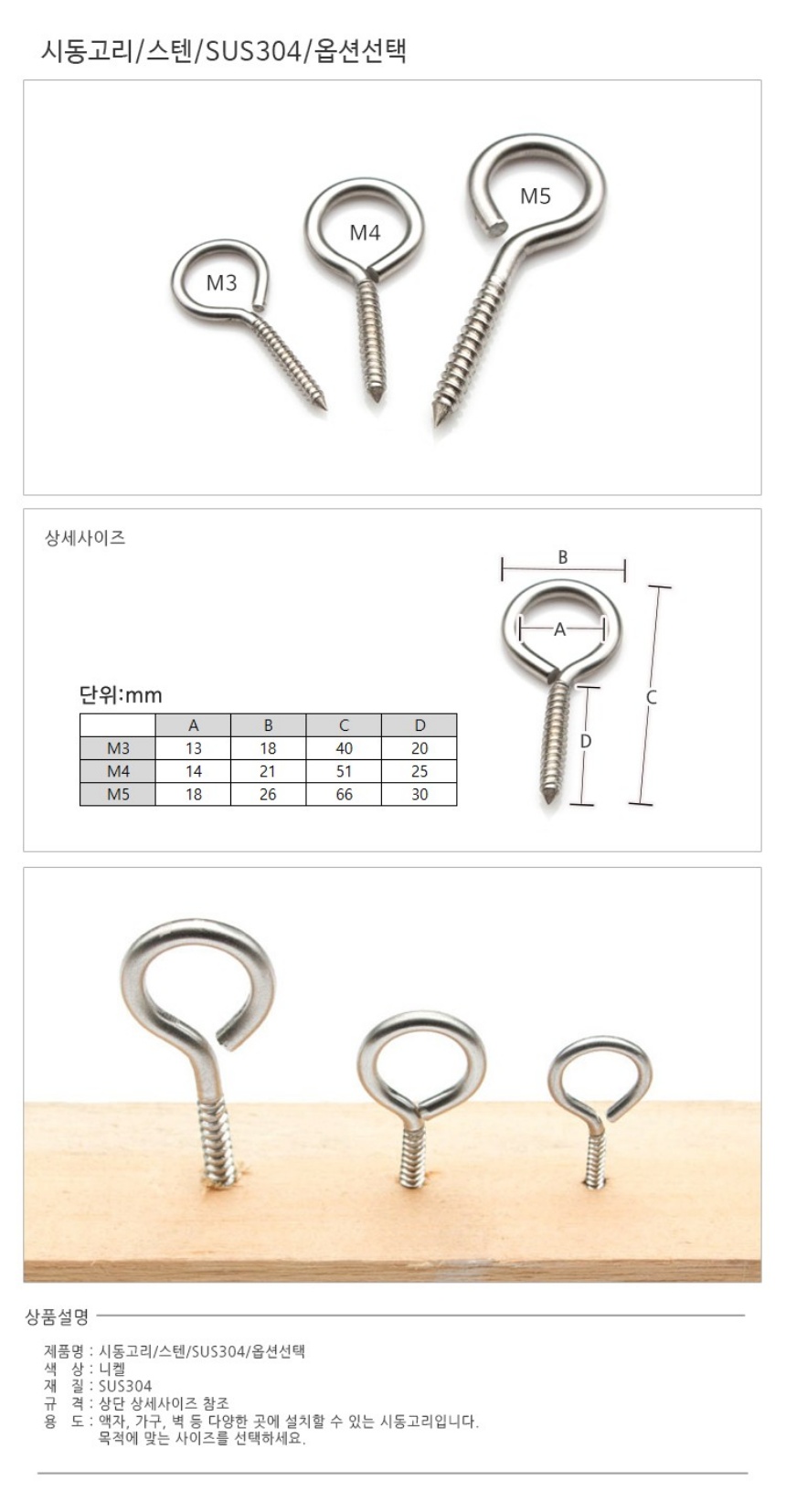 (CH)시동고리 스텐 SUS304 (M3 18*40mm,M4 21*51mm,M5 26*66mm)
