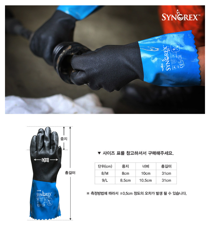 품명 ■ 우수한 신축성과 그립감, 부드러운 착용감 기름작업에 완벽한 장갑
