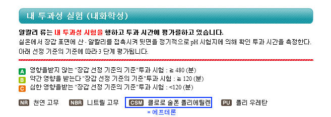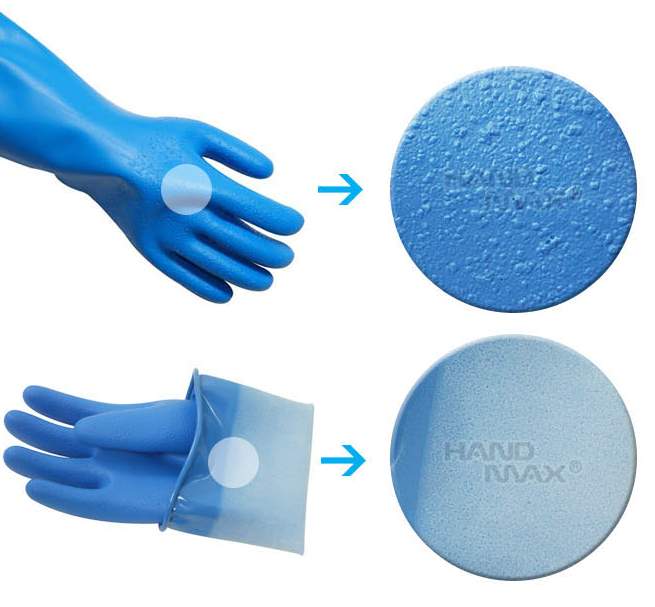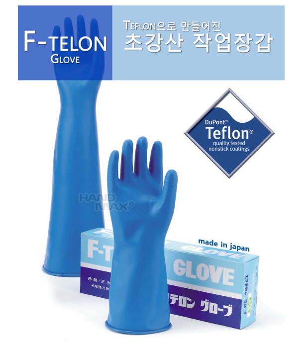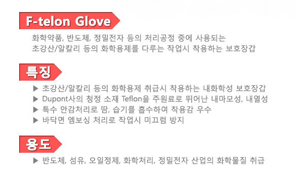 화학약품, 반도체, 정밀전자 등의 처리공정 중에 사용되는 초강산/알칼리 등의 화학용제를 다루는 작업시 착용하는 보호장갑