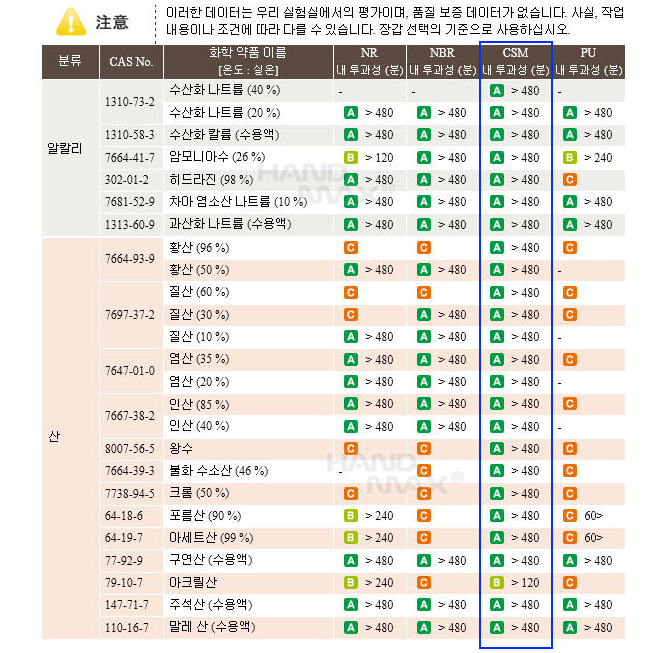 ■초강산 / 알칼리 등의 화학용제 취급시 착용하는 내화학성 보호장갑