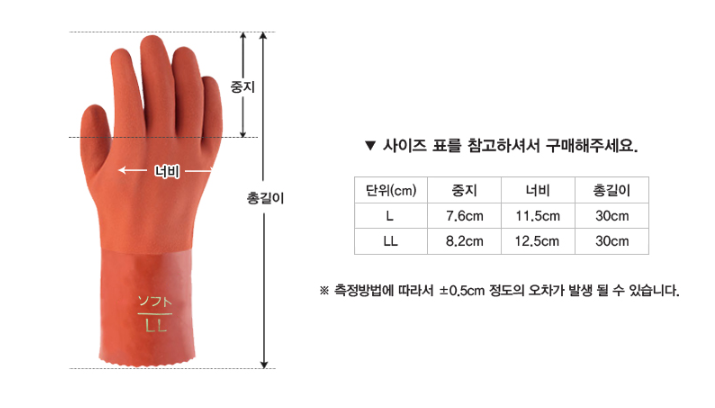 품명 ■ 부드러운 착용감으로 손의 피로를 줄여주는 무봉제 면안감의 다용도 내유장갑