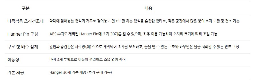ABS 재질의 Hanger Pin 30개 기본 제공되며, 핀의 좌우 방향을 조절해 다양한 크기의 초자류를 안정적으로 건조할 수 있습니다.