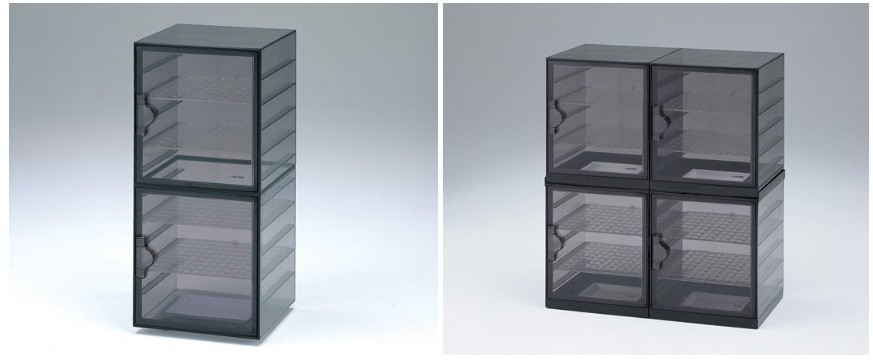 내부에는 실리카겔 트레이 2개(선반 4개)가 포함되어 시료 건조 및 저습 환경 유지가 가능합니다.