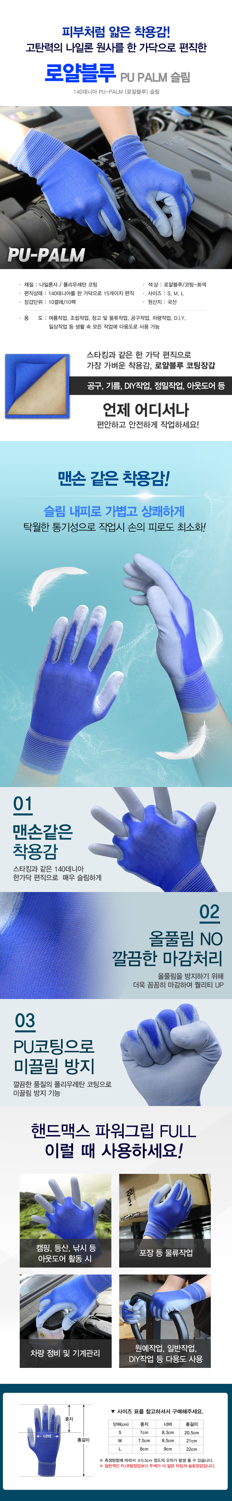 PU-PALM 로얄블루+그레이 얇고 가벼운 장갑 손바닥코팅 다용도장갑 10켤레