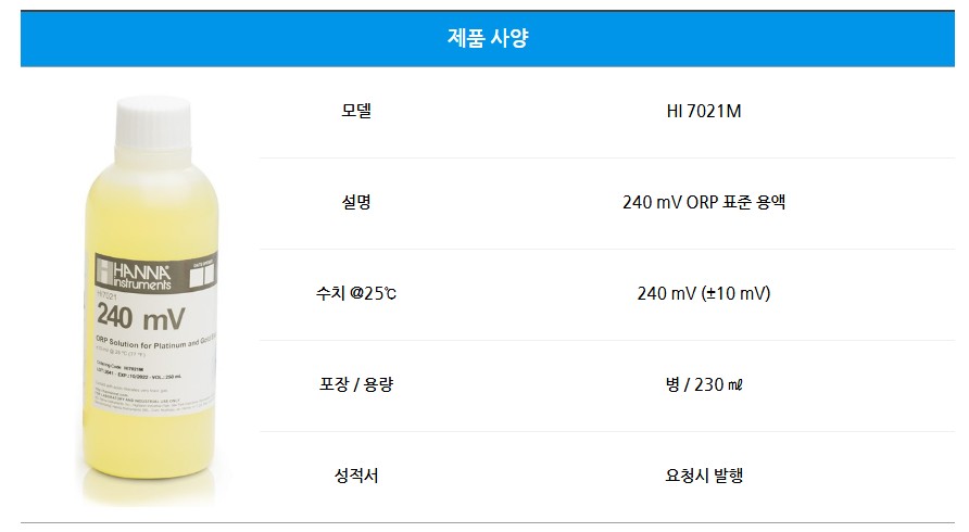 ORP 표준용액 240mV 측정기 전극 점검용 표준액 HI7021M (230ml)