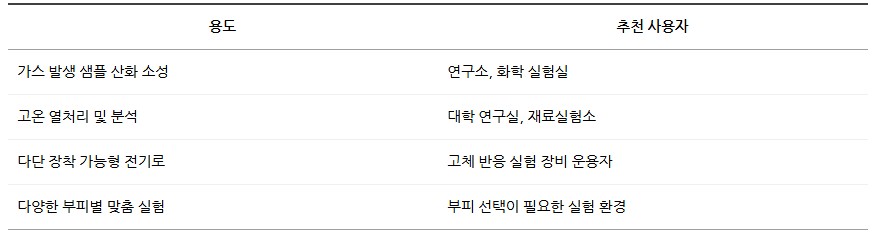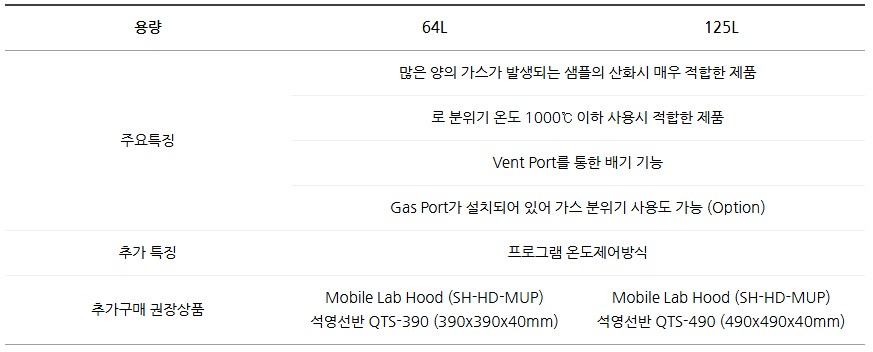 또한 고온에서도 장비 보호 및 실험 안정성을 높이기 위한 추가 옵션 제품(모바일 랩후드, 석영선반 등)도 함께 제공됩니다.