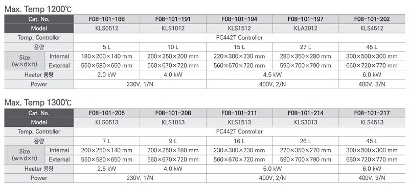 | F08-101-205 | KLS0513 | 7 L | 2.0 kW | 1300℃ |