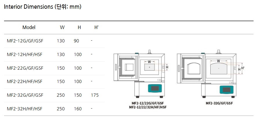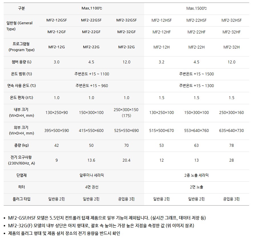 품명 1100℃·1500℃ 고온 실험용 전기로 MF2 시리즈, 터치 컨트롤러와 안전장치 탑재, 연구소·대학 맞춤형 열처리 장비