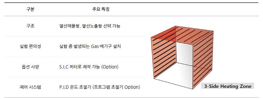 고온 처리 시에는 옵션으로 S.I.C 히터 사양도 선택 가능합니다.