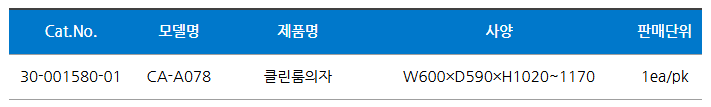품명 반도체·병원·연구소 환경에 적합한 CA-A078 클린룸의자. 무정전 레자 마감, 크롬도금 프레임, 높낮이 조절 기능 적용.