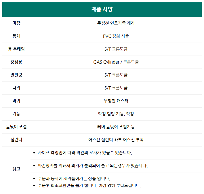 중심봉 GAS 실린더 및 레버 방식 높낮이 조절 기능을 적용하였습니다.