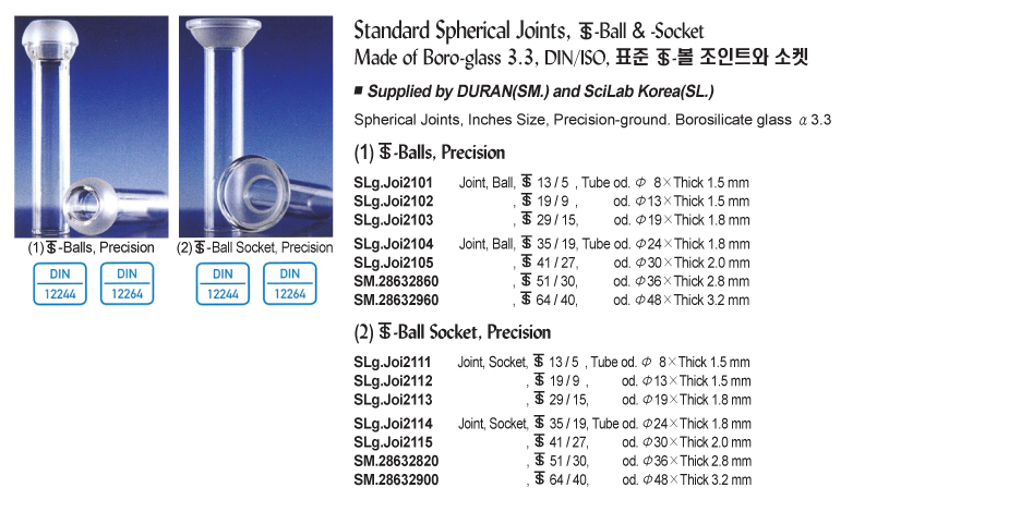 Standard Spherical Joints, -Ball & -Socket Made of Boro-glass 3.3