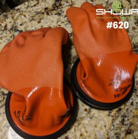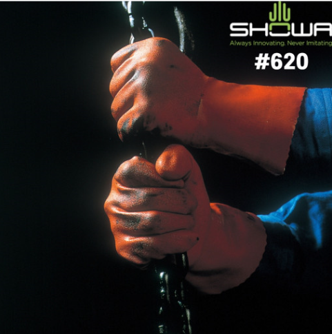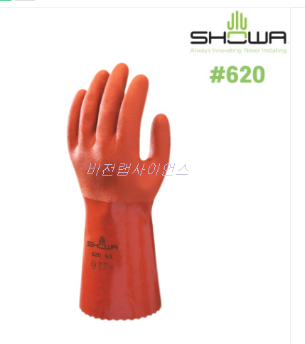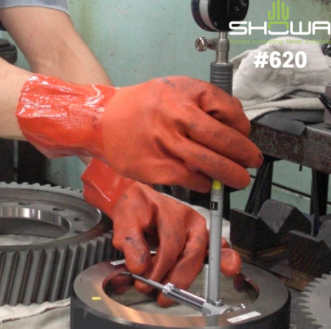 쇼와 620 PVC 이중 코팅 작업용 안전 장갑 내유 내화학 내산 방수 / 1켤레