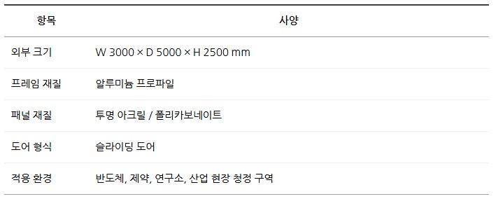 품명 알루미늄 프레임 크린부스, 반도체·제약·바이오 연구소 및 산업 현장 맞춤형 청정 작업 환경 구축. 모듈형 구조와 투명 패널로 설치 용이.