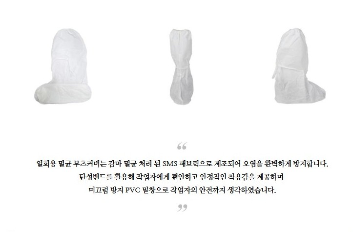 PVC 장화나 부츠 위에도 착용 가능하여 GMP 및 클린룸 환경에서 필수 보호용품으로 사용됩니다.